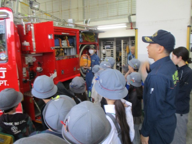 どのようにして火事からわたしたちを守っているのかについて、集中して見学し、学びを深めていました。