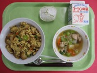 今日の給食は、3年2組リクエスト給食と図書委員会とのブックメニューでもある「えんぴつあげ」を作りました。このメニューは「はれときどきブタ」という本に登場するえんぴつ揚げをイメージして考案したもので、朝日小学校で人気のデザートの1つです。サクサクとした食感は好評で、1年生から6年生まで、笑顔で食べている様子を見ることができました。