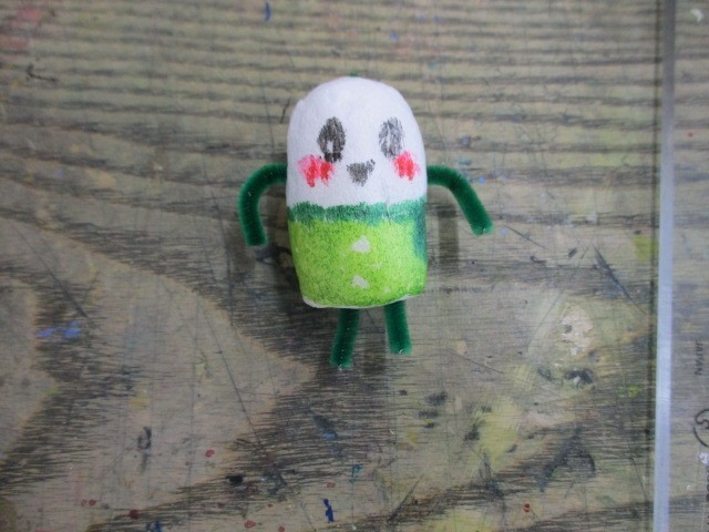 一人一人が作ったましゅまろ型のお人形が暮らすおうちを作っています。おうちを建てるための柱の位置等を考えていました。いろんなおうちが作られていて、見る方も楽しくなりました。