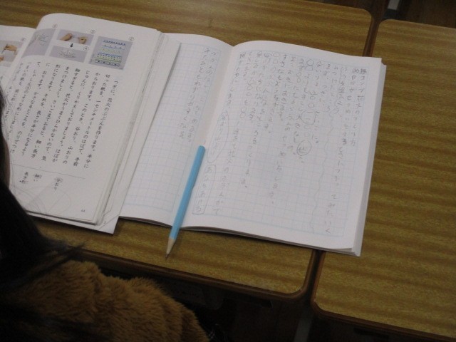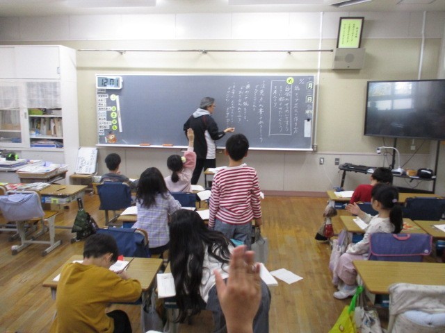 まず、自分で教材文を読みました。この説明のしかたは、「良いなあ」と思った文章と、その理由をそれぞれがノートに書いていました。その後は、発表です。たくさん挙手があり、自分の考えを発表することができていました。