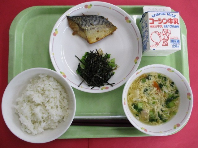 今日の給食は、脂がのっておいしいサバを使った香味焼きを作りました。サバのような青魚には、脳の栄養となるDHAが多く含まれています。また、魚が苦手な子でも食べやすいようサバ特有の臭みを香味野菜で調和したので、おいしく食べてもらました。