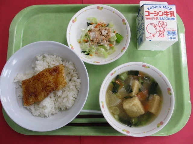 今日の給食では、厚揚げがたっぷり入った汁物を作りました。厚揚げは、大豆からできた食材です。体を作るために必要なたんぱく質が豊富に含まれています。また、腸内環境を整えてくれる食物繊維、血を作るために必要な鉄分など、成長期に欠かせない栄養素も多く含まれています。