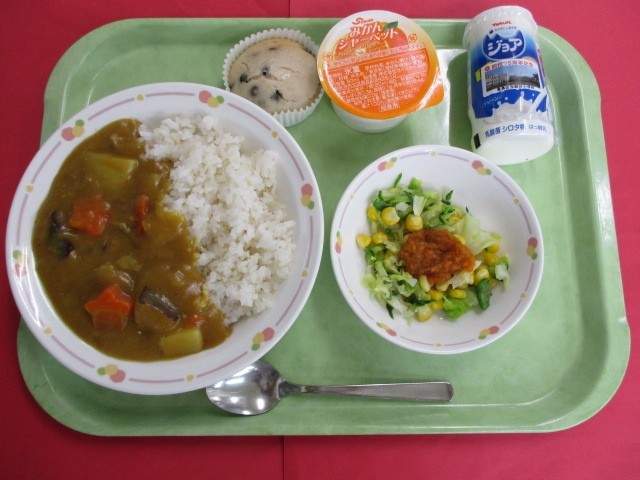 今日は、朝日小75周年を記念したお祝い給食を用意しました。今日のデザートは、朝日小学校で人気のデザート2種類から選択するセレクトデザートにしました。子供たちは、どちらにするか悩んでいたようです。自分で選んだ好きなデザートを食べることができ、満足そうでした。