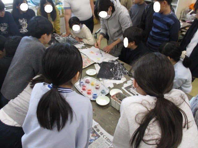 1月9日(金)、図工室から5年生の子供たちの「わあ」という歓声が聞こえてきました。