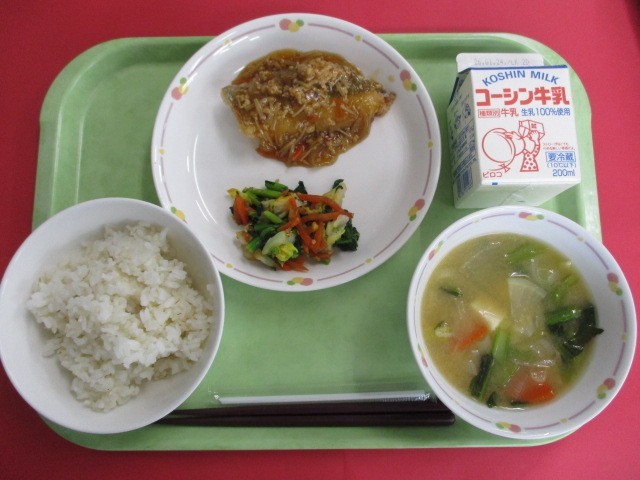 今日の給食は、今が旬の白菜を使った胡麻和えを作りました。白菜には、ビタミンが豊富に含まれており、風邪予防や免疫力アップする働きがあります。白菜は、煮物や焼き物にも、様々な料理に使うことができます。寒い冬に負けない強い体を作るためにも、旬のものをおいしく食べましょう。