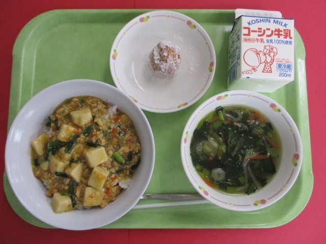 今日の給食は、おからを使ったドーナッツを提供しました。おからは、豆腐を作る過程で出た搾りかすです。おからには、大豆同様にお腹の調子を整える食物繊維が豊富に含まれています。また、肌をきれいにしてくれたり、体を作ってくれたりするたんぱく質も豊富に含まれています。サクサクとした食感のドーナッツは、子供たちに好評で、ほとんどの児童が完食していました。