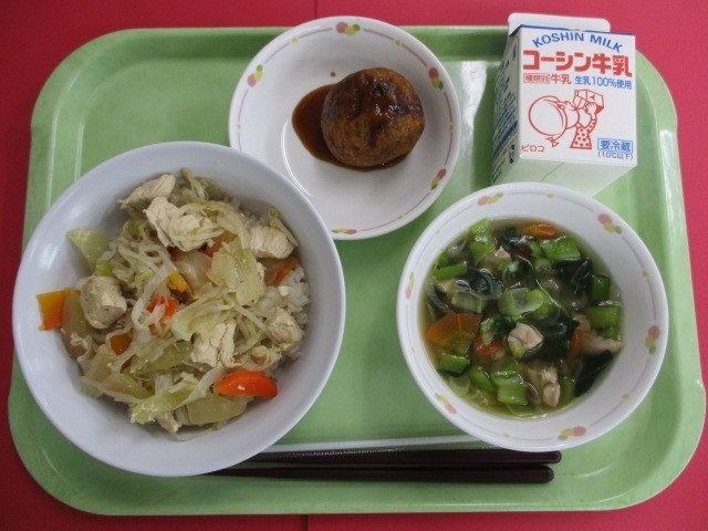 今日の給食は、タコを使った「たこ焼きフライ」を作りました。1つ1つ丁寧に作ったたこ焼きフライは、中がふわふわで、外はカリッとして、子供たちに好評でした。また給食時間には、タコにちなんだクイズを出し、楽しみながら知識を深めてもらいました。