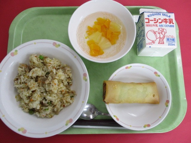3月13日の給食 公開日 2026/03/22 更新日 2026/03/18 給食 【今日の献立】・牛乳・カルビチャーハン・ポテサラ春巻き・サイダーポンチ 今日の給食では、以前好評だった、ポテトサラダを中に入れた春巻きを作りました。じゃがいものほくほくした食感がおいしく、ほとんどの子が完食していました。 いいね(0)