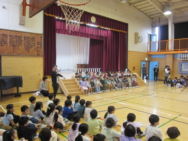 井1年生のお行儀が立派 井体育館に歌声が響いていました 井私はあまり歌は得意ではないのですが…