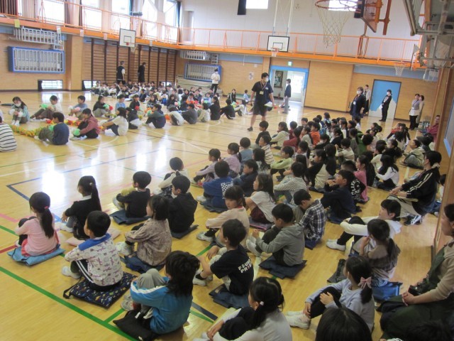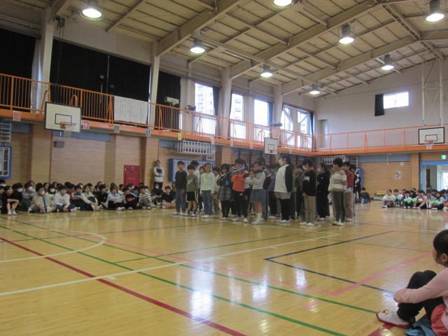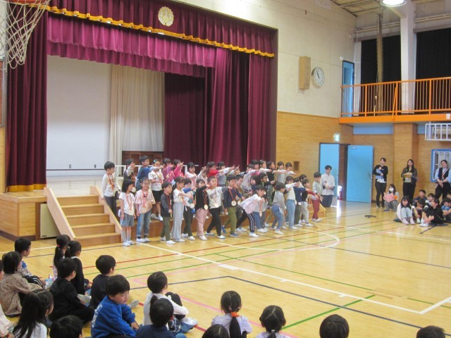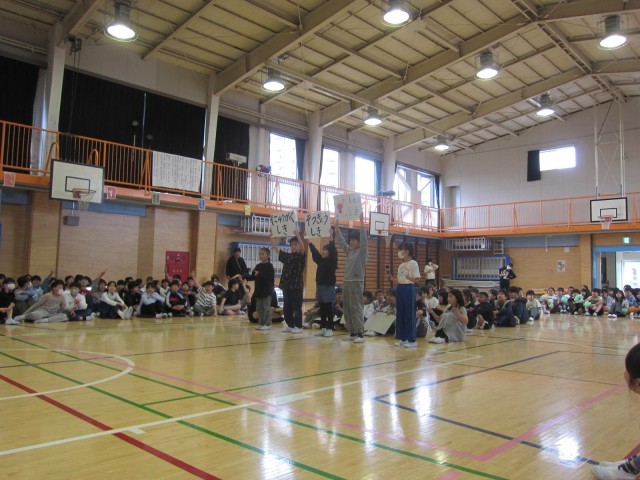 「ドキドキドン1年生」の歌を披露したり、全校合唱で「散歩」を歌ったりして楽しい時間を過ごしました。