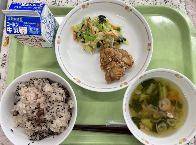 4月27日の給食 公開日 2026/04/28 更新日 2026/04/27 給食 赤飯とりの唐揚げ小松菜サラダかまぼこ入りすまし汁牛乳今日は一年生を迎える会がありました。お祝いにお赤飯にしました。 いいね(0)