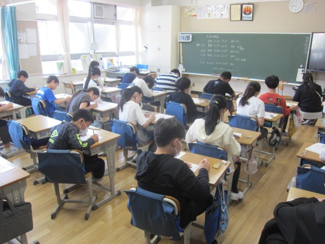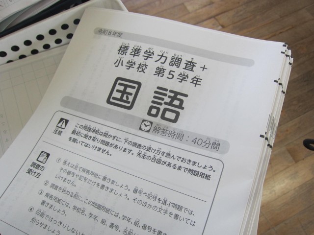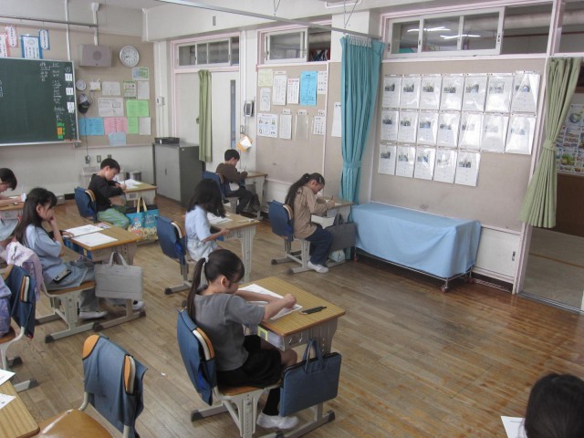 今日は、3年生以上の児童が「豊島区学力調査」に取り組んでいます。