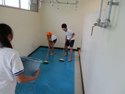 6年生 プール清掃 公開日 2016/06/23 更新日 2016/06/23 6年生 6月21日(火)、プール清掃を行いました。プールサイドや更衣室など、すみずみまで丁寧に清掃を行いました。全体には見えにくいところでの仕事ですが、こういう6年生のはたらきが学校行事を支える力の1つとなっています。 いいね(0)