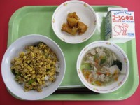 今日の給食は、子供たちに人気の「から揚げ」を作りました。から揚げは、1つ1つ丁寧に下味をし、油でカリッと揚げました。サクサクとした食感がより一層食欲がそそられました。