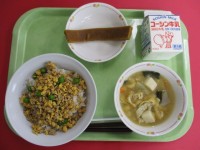 【今日の献立】・牛乳・キムチチャーハン・春巻き・ふるふるフルーツゼリー 今日の献...