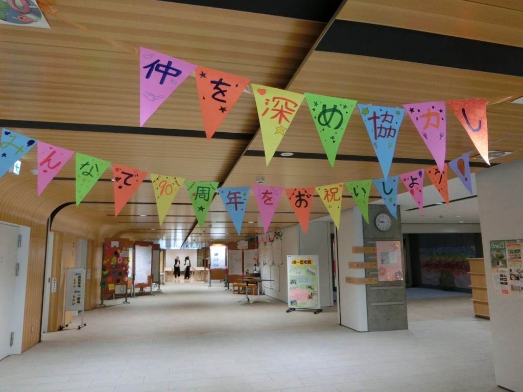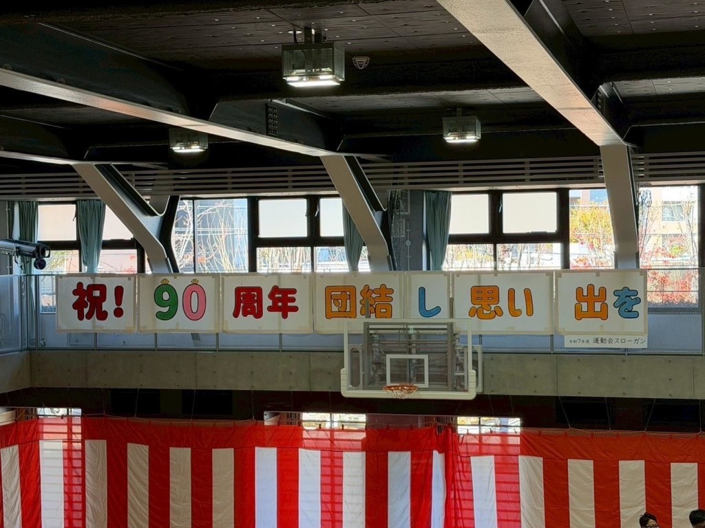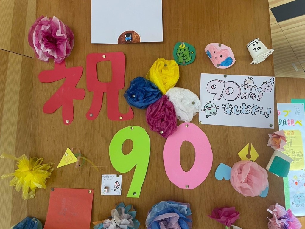 91作品集まり、全校児童と先生に投票にしてもらい、1番票が多かったこの素敵な作品が90周年のロゴになりました。