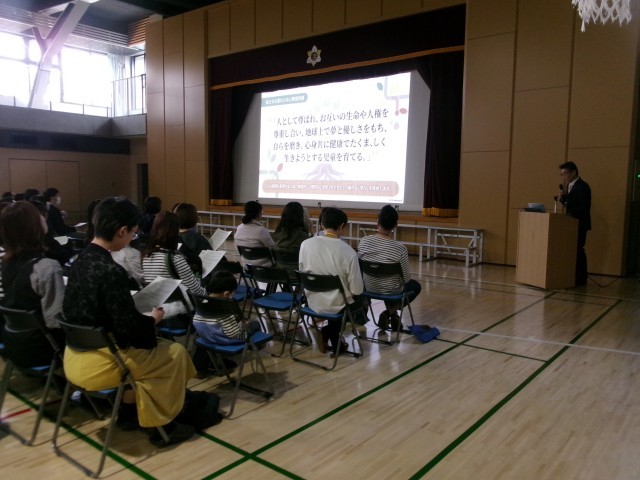 保護者会では、校長から学校経営方針についてと職員の紹介がありました。