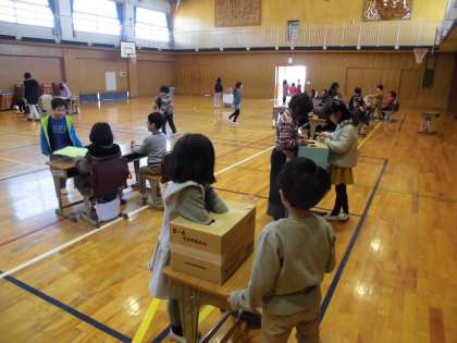 今日の3,4時間目に体育館で1年生が、31日(水)に行われる「保育園交流会」のリハーサルを行いました。とても寒い中でしたが、当日に保育園の子たちを迎えるために一生懸命に準備をしていました。
