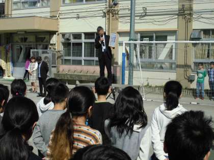 今年度初めての全校朝会がありました。今年度最初ということで、校長先生から「生かせ学び」「健康増進」「一途な夢」「地球人の優しさ」という池一小の学校目標についてのお話がありました。
