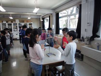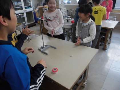 いろいろな音楽のリズムに合わせて、ふりこを動かすという活動をしました。どの班もふりこの動きを速めたり、遅くしたりするにはどうすればいいのか話し合いながら楽しく活動することができました。