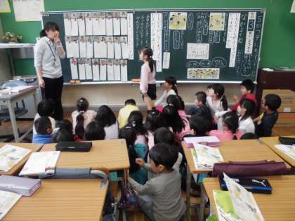 今年から池一小では校内研究(授業改善のための研究)で「特別の教科道徳」の授業改善に取り組んでいます。きょうも3クラスで道徳の授業がありました。下の写真は1年生と4年生の様子です。
