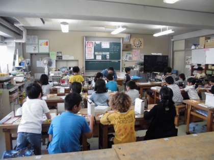 図工室をのぞいてみると…。3年生が図工の学習をしていました。