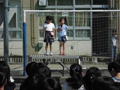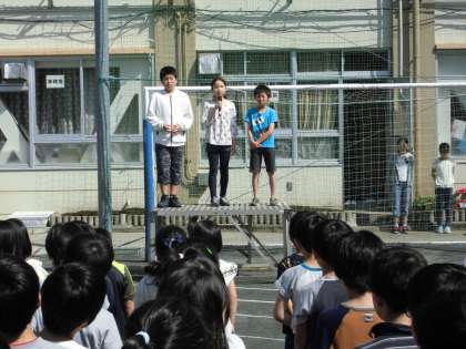 今日のスピーチは2年生でした。2年生になって頑張りたいことについてしっかりとお話することができました。その後は、保健委員会から4月のけが調べについての発表がありました。1年生のけががかなり去年より少なかったそうです。全体でも去年の4月と比べるとかなり減りました。