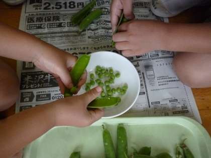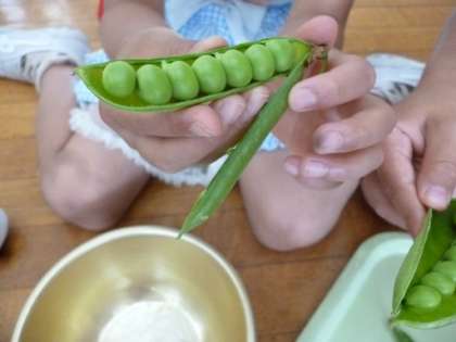 1年生が、グリンピースの鞘だしをお手伝いしてくれました。