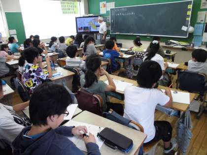 4年生は、ラトビア共和国の雑貨専門店を経営されている方、5年生はリベリアで実際に仕事をして生活なさっていた方、6年生はヨルダン・ハシェミット王国へ青年海外協力隊員として派遣されていた方が来てくださいました。