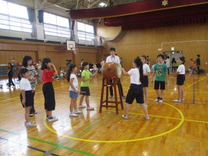 先ほどまで池一祭で盛り上がっていた体育館でしたが、その後はPTAの皆さんと太鼓クラブの皆さん、踊りの練習をしたい児童が集まり、「池一音頭」「炭坑節」「東京音頭」の練習をしました。