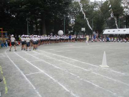 高学年リレー、そして最後の得点種目の大玉送りです。