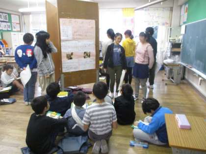 6年生は、5年生に向けて10月の下旬に実施した「職場体験」の発表をしました。5年生も来年のことに思いを馳せながら真剣な表情で6年生の発表を聞いていました。