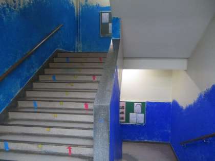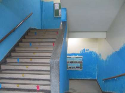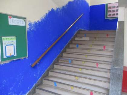 そして、こちらは第二階段の様子です。こちらは青に塗られていて、第一階段と同じで階が上がるごとに色が薄くなっています。