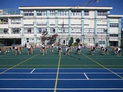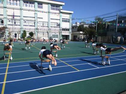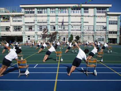 4年生は、池一小では初の試み、椅子組体操です。指先、足先までピンと伸ばし、全体がそろうととてもきれいです。