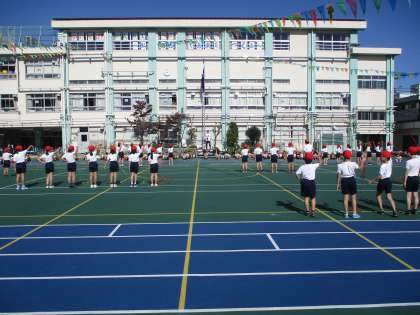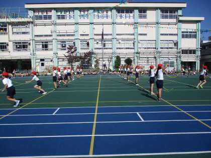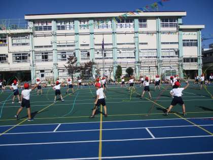 3年生のダンスはリボンを使ったダンスです。リボンの動きをみんなでそろえるのはとても大変ですが、3年生はとてもきれいにリボンを扱っています。