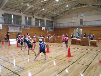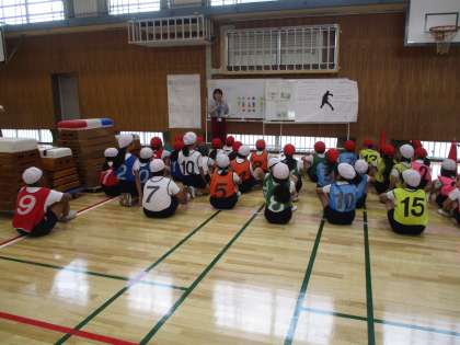 10月12日(月)から4週間、教育実習の大学生が教員になる勉強をするために4年生に入っていたのですが、いよいよ今日が最終日となりました。今日は大学の先生も来校されて研究授業を行いました。体育の新しい教材「テニピン」の授業でした。