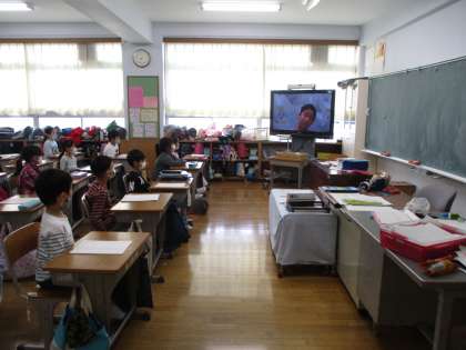 今日の全校朝会では、3年生の児童2名が、「85周年キラキラウィーク」のことについてスピーチをしました。