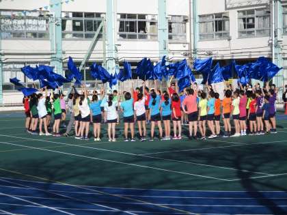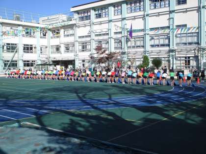 今日の1時間目は、最高学年6年生の登場です。演目は、「This is me〜未来へ〜」です。演技を始める前には円陣を組み、全員の気持ちを一つにして表現することができました。