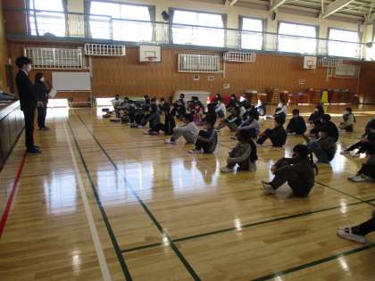 始業式が終わった後、6年生は体育館に集まり、小学校生活最後の3学期の学校生活について、担任の先生からのお話がありました。みんな真剣に聞いています。