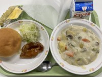 1年生と2年生の特別献立の日は、ごはんを「丸むすび」にしました。