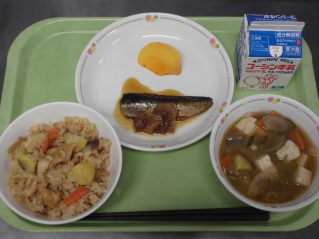 今日から2学期の読書月間がはじまります。読書月間コラボ給食第1弾は「ごんぎつね」です。ごんが森でひろった栗とこぎつねのごんをイメージして三角にきった油揚げをいれた「ごんぎつねごはん」と、ごんが兵十に届けようとしたいわしを煮た「いわしの生姜煮」です。4年生の国語の教科書にものっているお話です。1階の栄養黒板前に読書月間とコラボした本を掲示するのでぜひ読んでみてください。