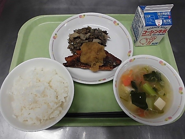 今日は旬のさばを揚げて、おろしソースをかけました。おろしソースには、大根おろしが入っています。大根おろしは、生で食べると、消化をたすけるアミラーゼやプロテアーゼ、リパーゼなどの酵素がはいっています。また、ビタミンCも多く、肌の調子を整えます。そして、大根にはないのですが、大根をおろしてできる成分イソチオシアネートは、辛味成分であり、魚のくさみを消したり、口内炎やのどの痛みをおさえる殺菌作用があったりします。ただし、加熱してしまうと成分が変化してしまうので、なるべく生の大根おろしのがおすすめです。でも、今日のようにタレにしても、おいしく食べられ、大根おろしが苦手でも食べやすくなります。今日の料理で大根おろしが苦手ではない!おいしいな!と思った人は、おうちで生の大根おろしも挑戦(ちょうせん)してみてください♪