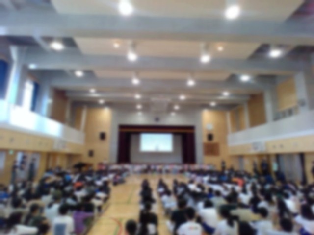 1年生が仲間入りし、1年生から6年生全員で校歌を歌いました。