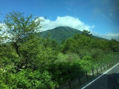 華厳の滝から光徳牧場へ行く途中、男体山が見えました。