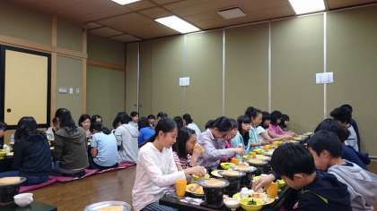 最終日は洋食でした。ナイフとフォークを使って上手に食べていました。