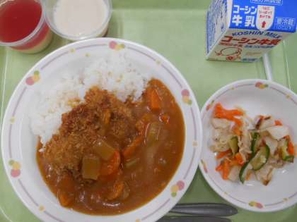 今日のおすすめメニューは、「“勝つ”カレーライス」と「紅白ゼリー」です。運動会で池三小のみなさんが全力を出せるようにメニューを考えました。