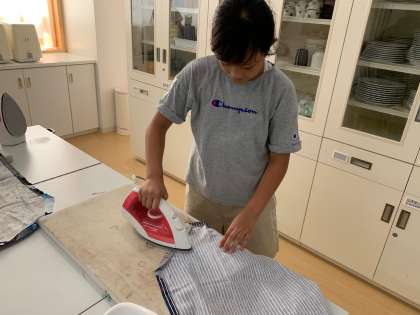 8月の終わりから始めた布製品の製作。いよいよ、完成に近づいてきました。アイロンや針を使って丁寧にしつけをする子、ボタンや綿を使って自分なりの飾りを付ける子、それぞれが工夫を考えて製作を進めています。