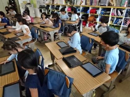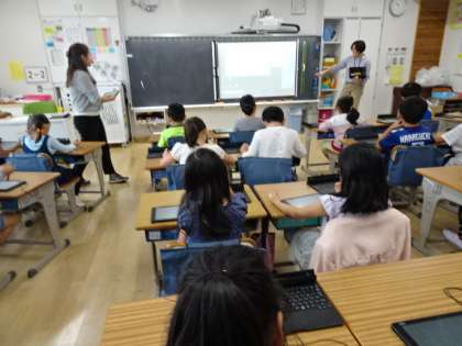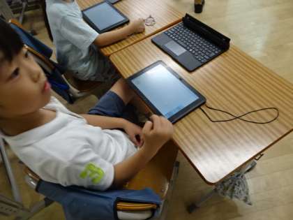 国語の学習で漢字を組み合わせて漢字を作るプログラミングを体験してました。