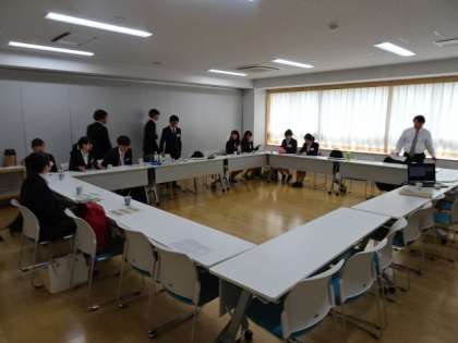 立教大学の学生が授業の見学にきました。 熱心にメモをとったり、先生に話を聞いたりしています。