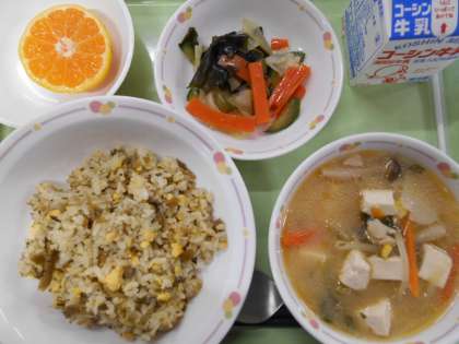 今日の果物は「みかん」です。今年度初めての登場です。みかんはビタミンCがたくさん含まれています。2個食べると、1日に必要なビタミンCがとれると言われています。ビタミンCはかぜを予防してくれる効果があります。朝と昼の温度差が大きくなり、体調を崩しやすい時季です。体調を崩していませんか?しっかりと給食を食べて、元気に過ごしましょう。(お昼の放送)